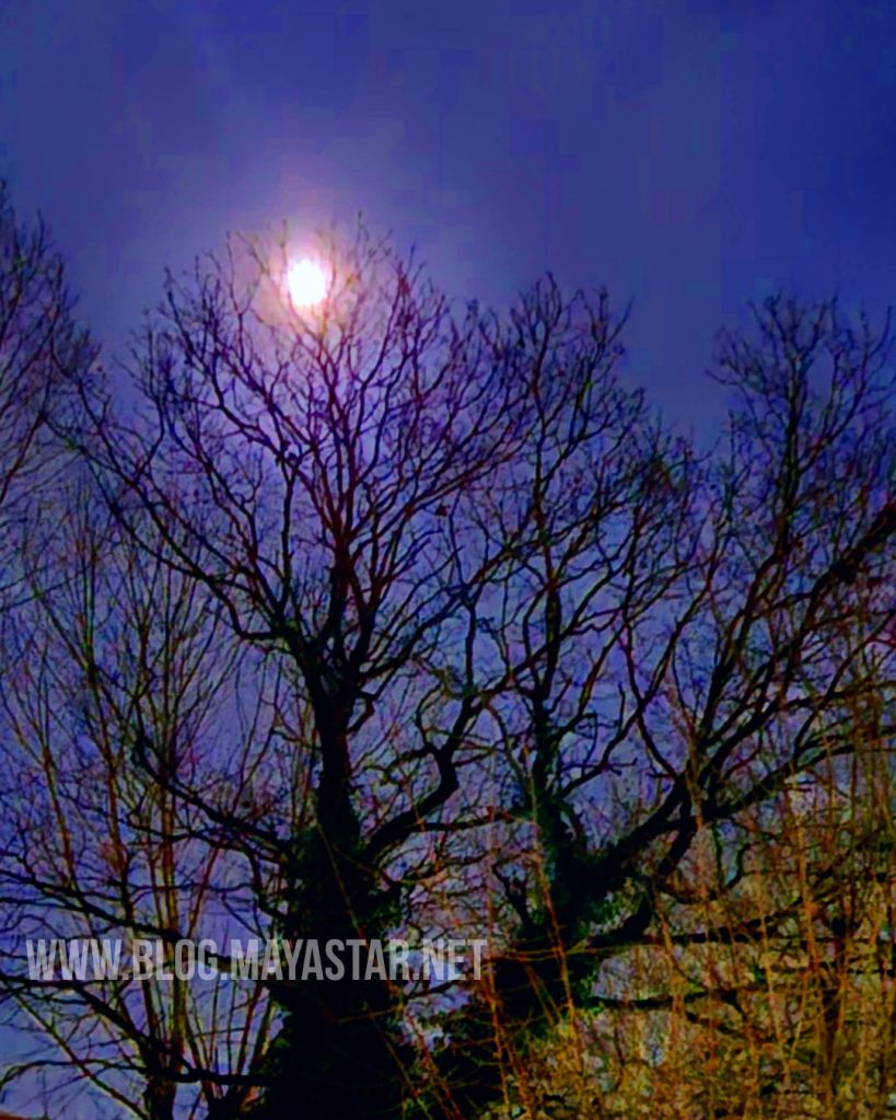 Today’s update on the Maya Muses Blog includes: the 3/3 Portal, Full Moon Magick, connection with Divine Feminine Energies, meditating and moon gazing. And to accompany this update, here’s a gorgeous photograph I took of the Full Crow Moon last night! It looked very dramatic through the branches of the oak tree. The energy was electric and my rituals were powerful! Wishing you all a magickal day XX Maya